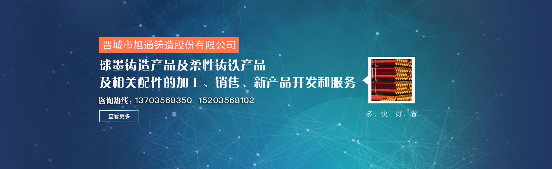 晉城市旭通鑄造股份有限公司是一家致力于球墨鑄造產(chǎn)品及柔性鑄鐵產(chǎn)品及相關配件的加工、銷售、新產(chǎn)品開發(fā)和服務的網(wǎng)絡平臺,以“多、快、好、省”為服務宗旨,多種選擇、快速定位、優(yōu)質(zhì)產(chǎn)品、省錢省力,為客戶提供精準服務......